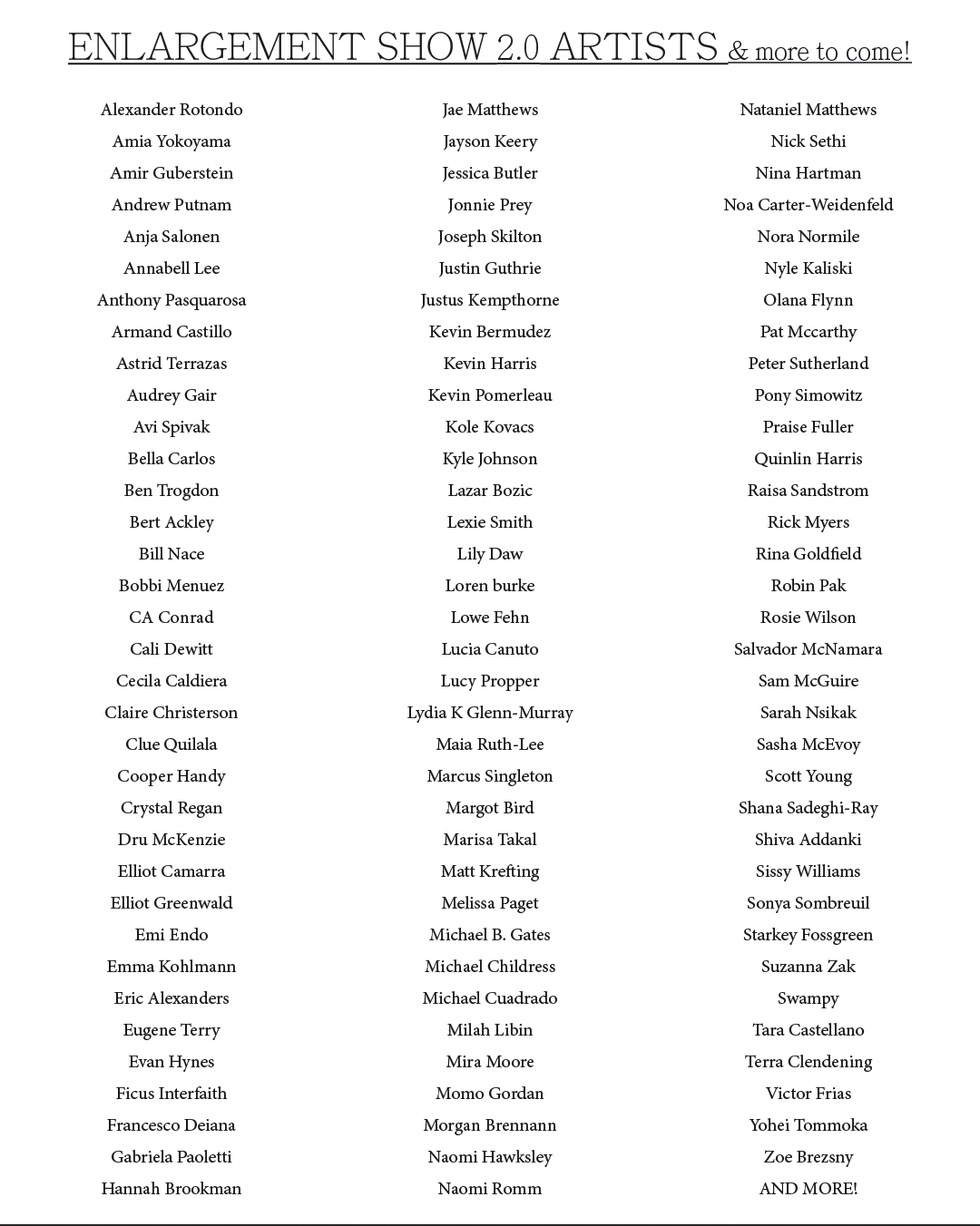 Enlargement Show 2.0 operating hours Friday-Sunday 12-6 pm